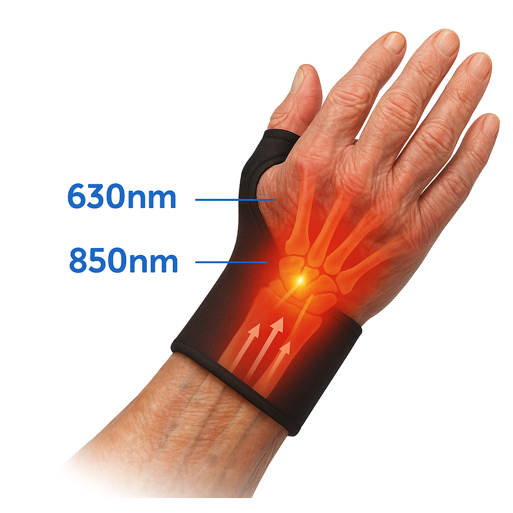 Once you power it on, Orthowrap™ sends gentle red and infrared light deep into your wrist joint.